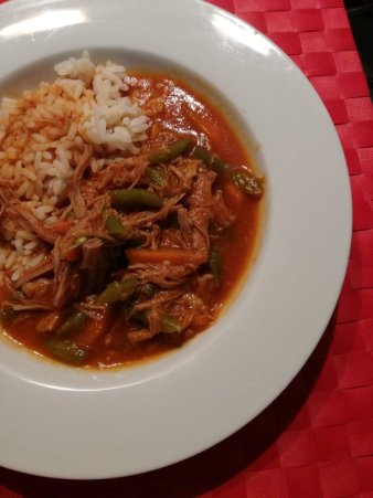 Hilachas Se pone a cocer la carne con la cebolla, ajo y sal al gusto en olla de presión por 35 min. Cuando esta lista se saca p... Leer Más