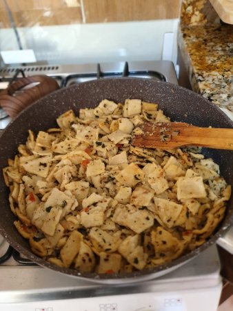 Sopa de tortillas Sofreír la cebolla y el tomate. Ya picados, agregar los condimentos, luegos cortamos las tortillas en cuadros y las a... Leer Más